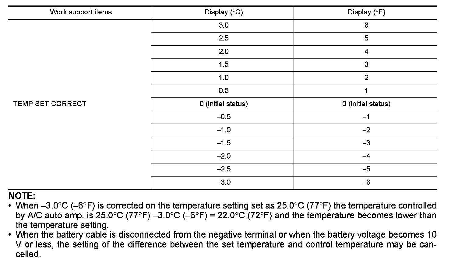 - When 3.0�C (-6�F) is corrected on the temperature setting set as 25.0�C (77�F) the temperature controlled by A/C auto amp. is 25.0�