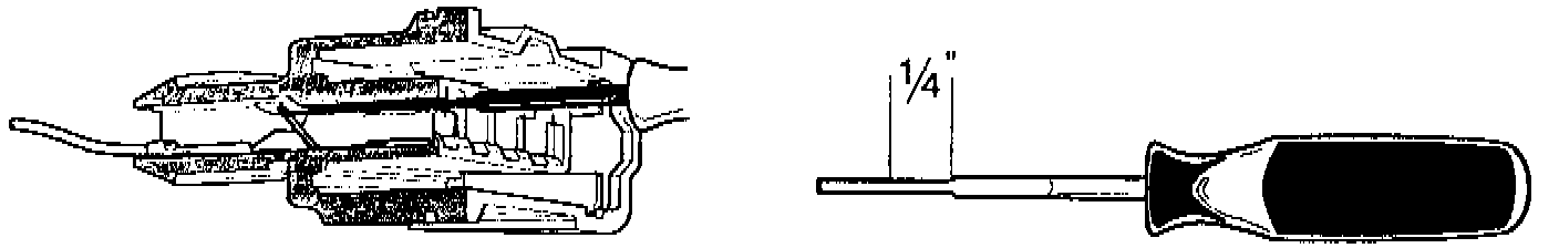 4. Remove, inspect, and reinstall the female pins at the MAFS harness connector ONE AT A TIME. Carefully push the connector and wire out through the back side of the connector. Use a modified Kent-Moore tool J38751-305 (modify by increasing the length of the working end of the tool about 1/4"- this can be done with a grinder or file) Extract the individual pin by releasing the locking tab with the special tool through the recess on the component side of the connector. Inspect the contact surfaces of the pin for any corrosion or damage. The female pins contact force should be checked by sliding the female connector over the appropriate male pin on the MAFS and checking for a snug fit. The contact force can be increased by bending the contact springs toward each other slightly with an appropriate tool.