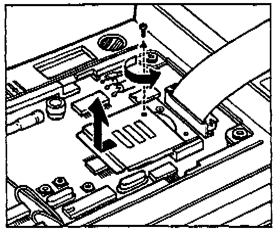 2. Remove the two card reader screws with a phillips screwdriver. Then remove the card reader as shown In the illustration. IT IS not necessary to disconnect the connector between the card reader and body.