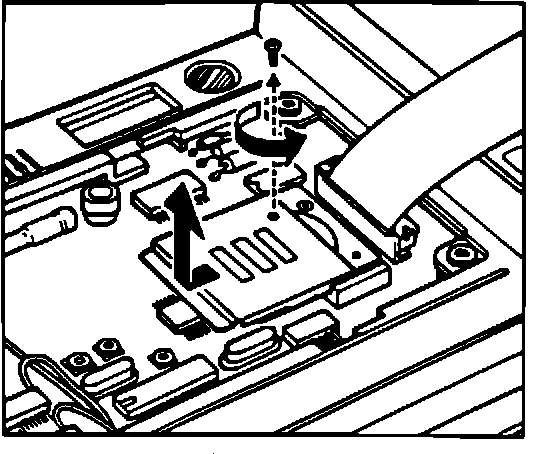 2. Remove the two card reader screws with a phillips screwdriver. Then remove the card reader as shown in the illustration. It is not necessary to disconnect the connector between the card reader and body.