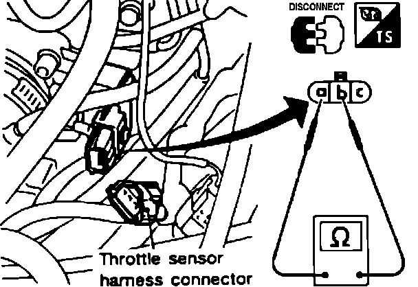 b. Accelerator pedal partially released, resistance should be 2000-10000 ohms.