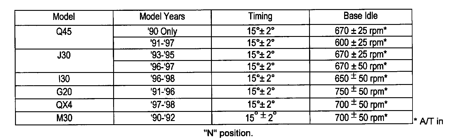 If the model or model year you are working on is not listed, refer to the appropriate service manual (EF & EC or EC section in recent service manuals) section, and perform the "IDLE SPEED/IGNITION TIMING/IDLE MIXTURE RATIO INSPECTION" procedure.