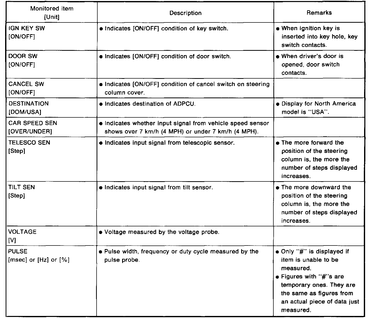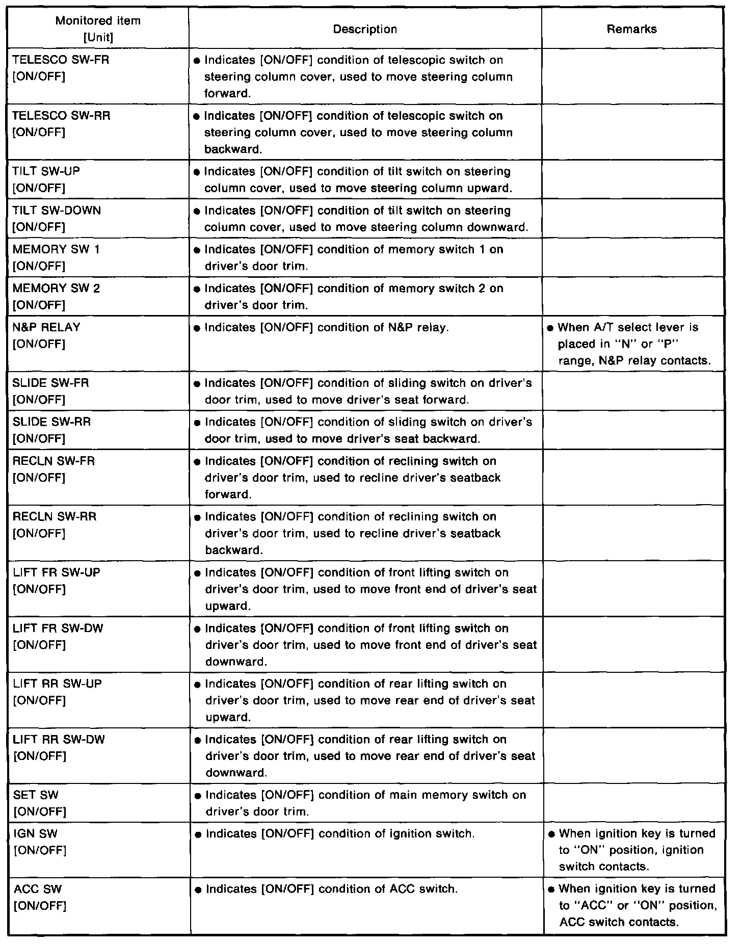 In the data monitor mode, the following input signals can be shown on the CONSULT display screen.
