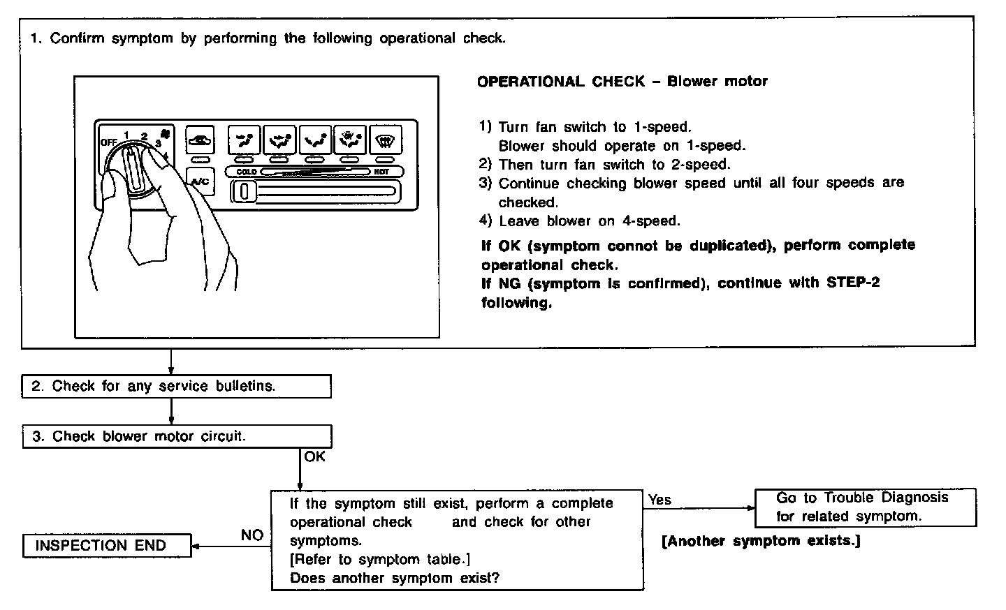 SYMPTOM: Blower motor does not rotate at all.INSPECTION FLOW