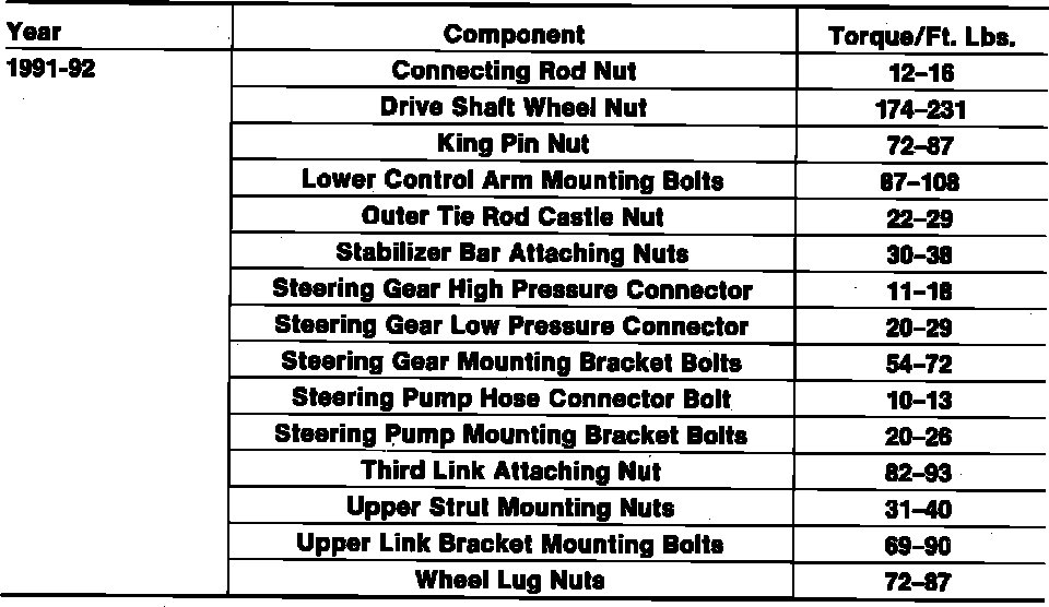 Steering Tightening Specifications