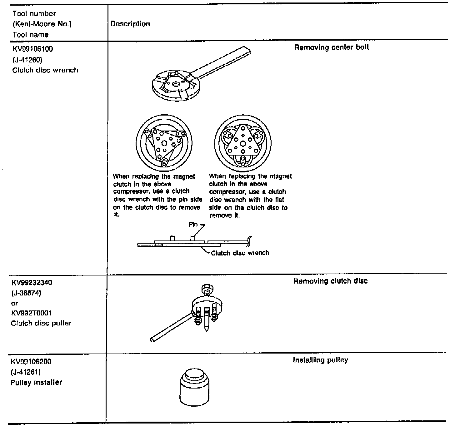 SPECIAL SERVICE TOOLS FOR V-6 COMPRESSOR