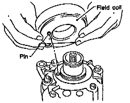 ^ Install the field coil. Be sure to align the coil's pin with the hole in the compressor's front head.