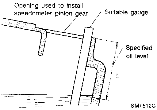 - Remove speedometer pinion and check that the oil level `L' at vehicle rear side is within specification.