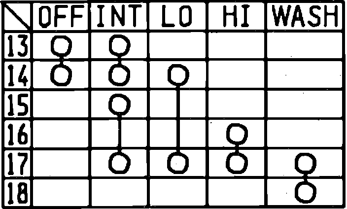 3. Connect a suitable ohmmeter and check continuity between wiper switch terminals as shown in Fig. 12.