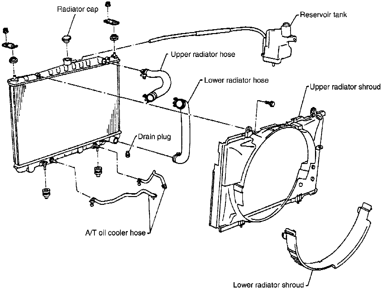 4. Disconnect automatic transmission cooler lines from radiator.