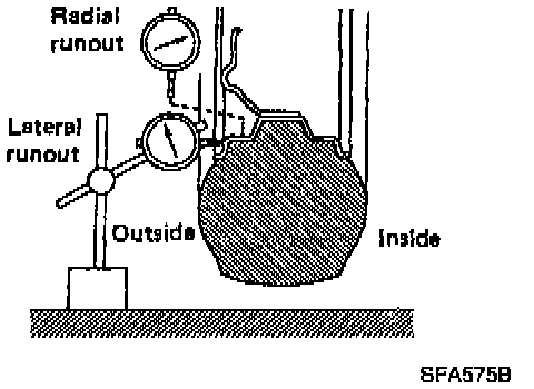 NOTE: Before checking front wheel alignment, be sure that vehicle is in an unladen state, i.e. fuel, radiator coolant and engine oil are full and spare tire, jack, hand tools and mats in designated positions.