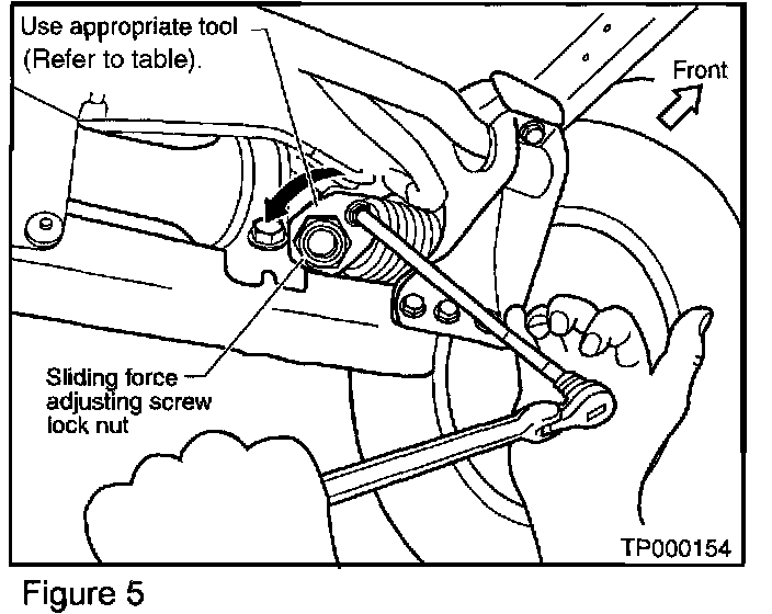 2. Tighten the sliding force adjusting screw slightly then re-tighten the lock nut while holding the adjusting screw (see Figure 6).