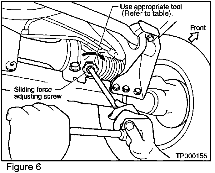 ^ If the caster setting is correct perform the Steering Rack Sliding Force Adjustment procedure below.