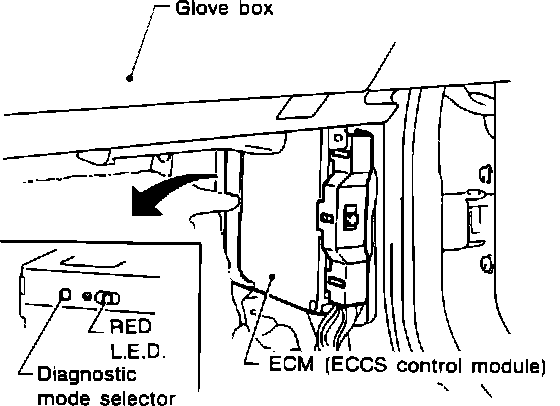 Engine Control Module (ECM) And Diagnostic Light Emitting Diode (LED) Locations: