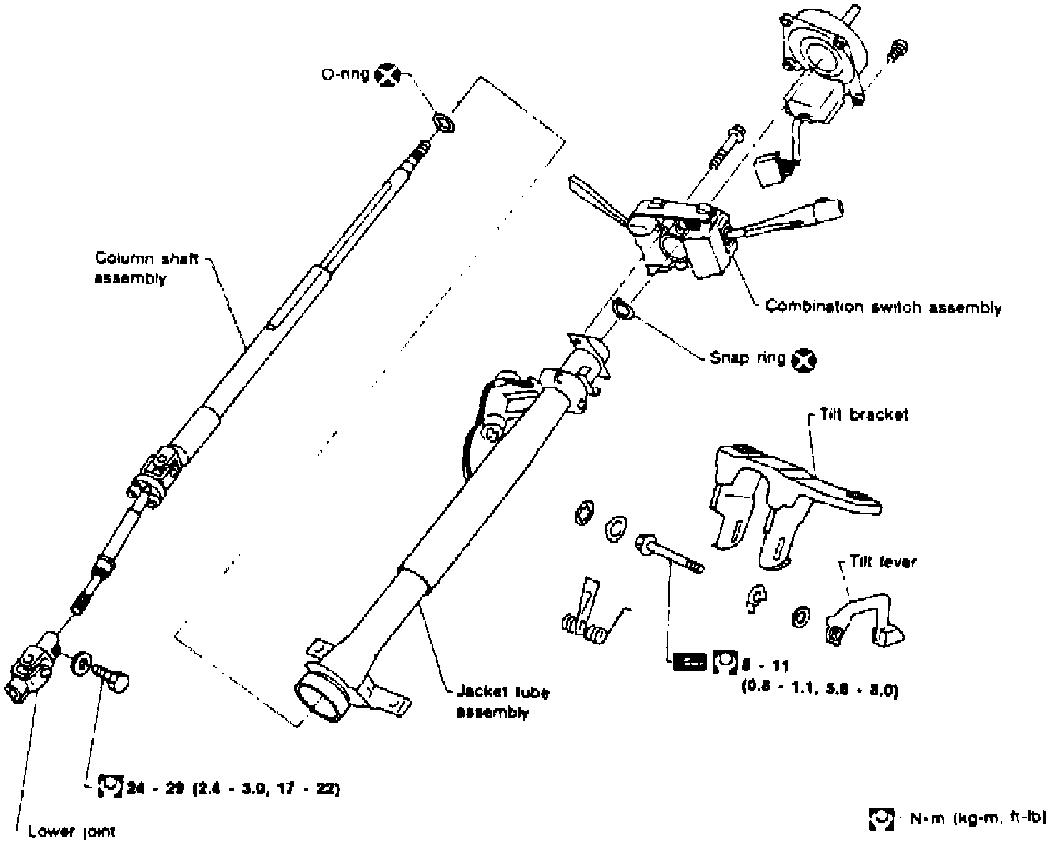 a. When installing column, loosely tighten all brackets and clamp attaching bolts. After all attaching bolts are installed, then secure all bolts.