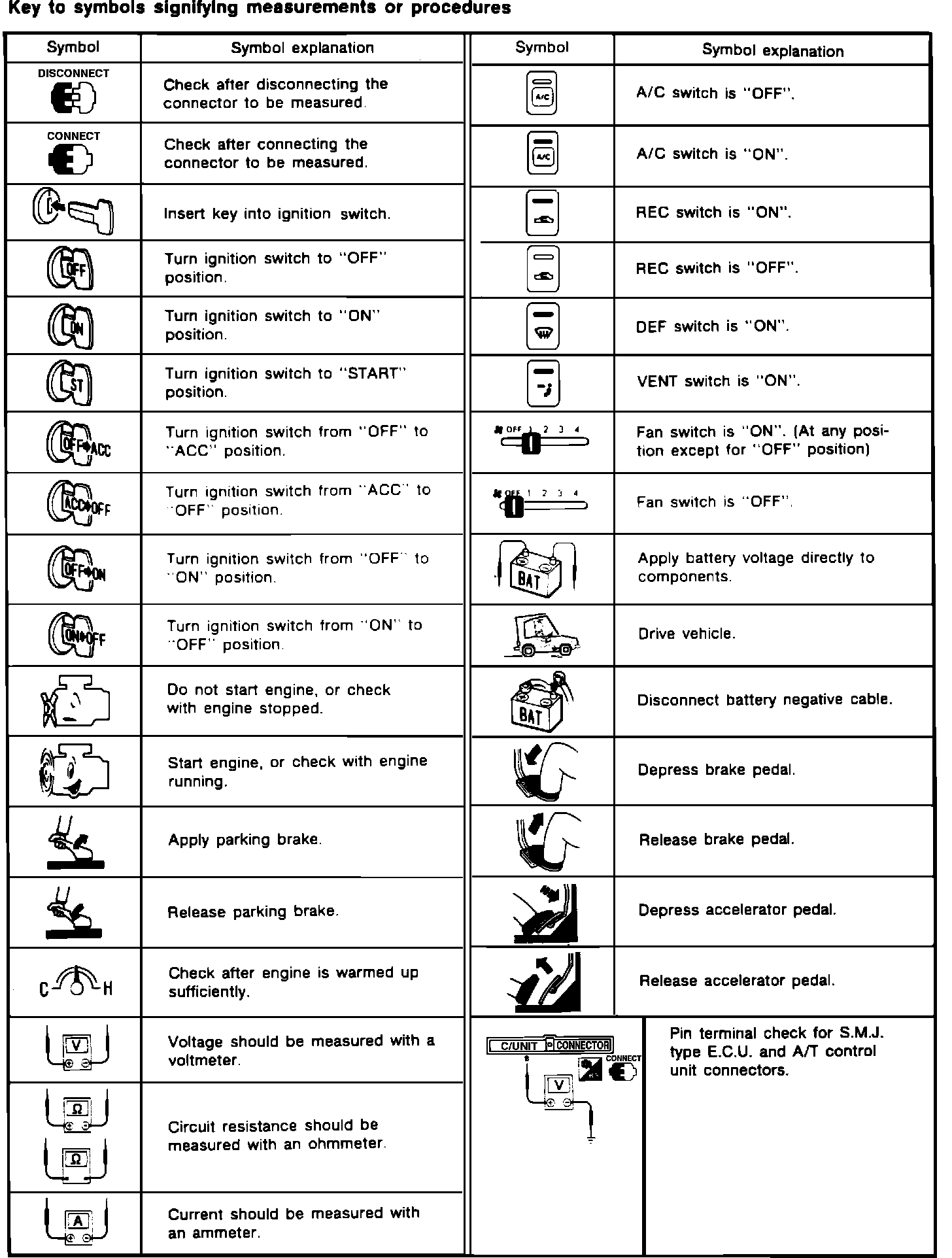 Key to Symbols Signifying Measurements or Procedures