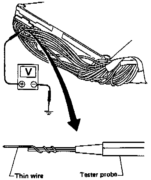 3. Perform all voltage measurements with the connectors connected. Extend tester probe as shown to perform tests easily.