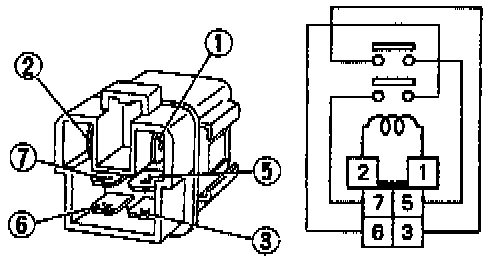 Check continuity between terminals "3" and "5", "6" and "7". If NG, replace relay.