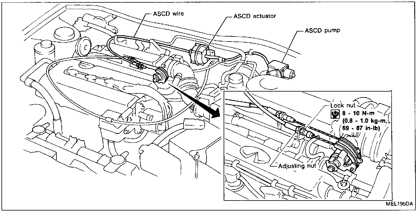 ^ Be careful not to twist Automatic Speed Control Device (A.S.C.D.) wire when removing it.