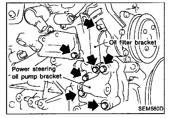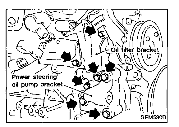 13. Remove oil filter bracket and power steering oil pump bracket.