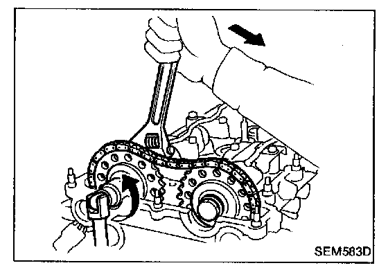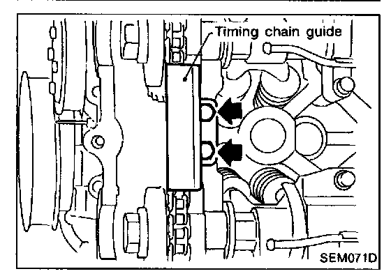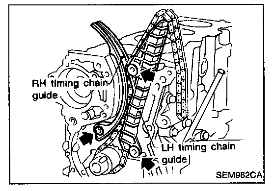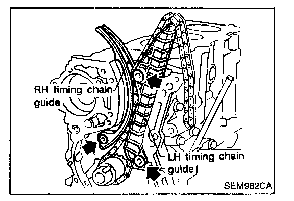 Timing chain removal and installationCAUTION: After removing timing chain, do not turn crankshaft and camshaft separately, or valves will strike piston heads.