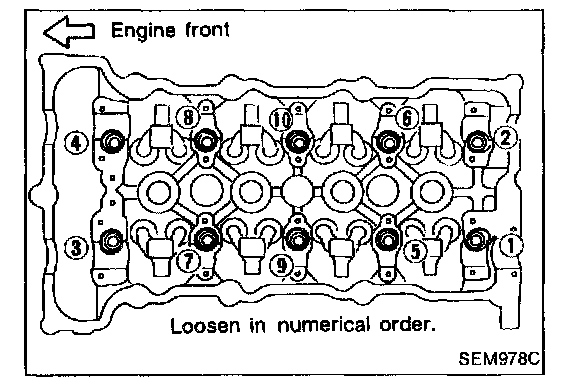 RH camshaft: Tighten bolts 09 - 10 in that order then tighten bolts 1 - 8 in that order. 2 Nm (0.2 kg-m, 17 in-lb)