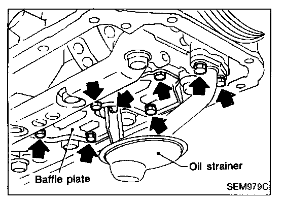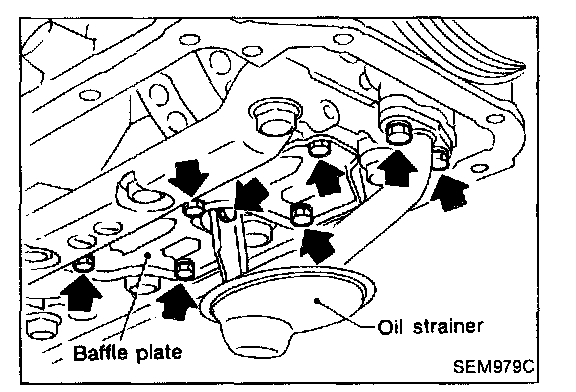 10. Install oil strainer and baffle plate.