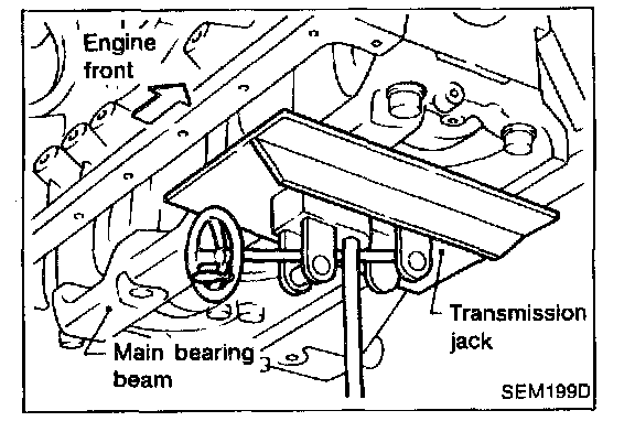 29. Set a suitable transmission jack under main bearing beam.
