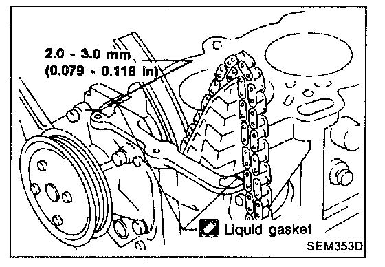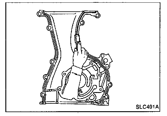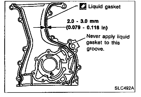 5. Apply a continuous bead of liquid gasket to mating surface of front cover.