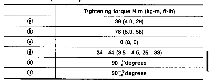 D Tighten all bolts to 34 to 44 Nm (3.5 to 4.5 kg-m, 25 to 33 ft-lb).