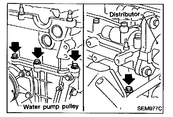 8. Remove alternator and power steering pump.