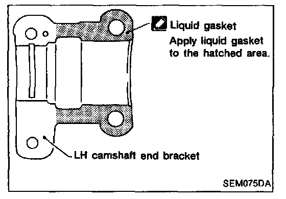 19. Apply a continuous bead of liquid gasket to mating surface of LH camshaft end bracket.