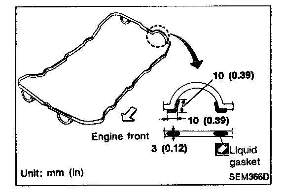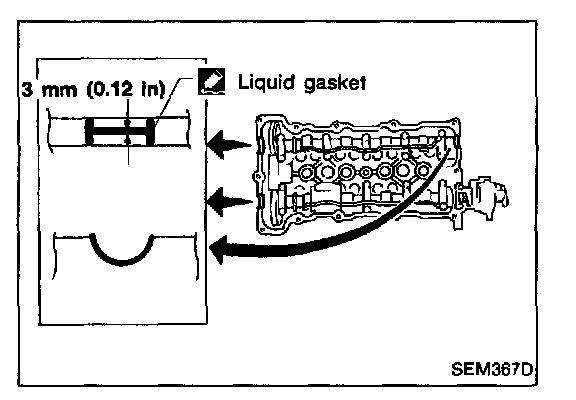 28. Apply a continuous bead of liquid gasket to mating surface of rocker cover gasket and cylinder head.