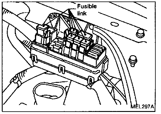 a. If fusible link should melt, it is possible that critical circuit (power supply or large current carrying circuit) is shorted. In such a case, carefully check and eliminate cause of problem.