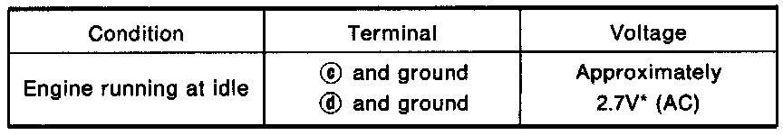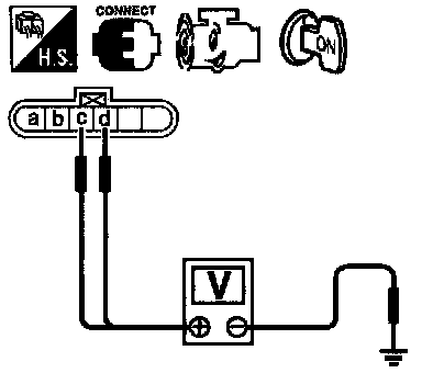 2. Check voltage between camshaft position sensor terminals (c), (d) and ground with AC range.