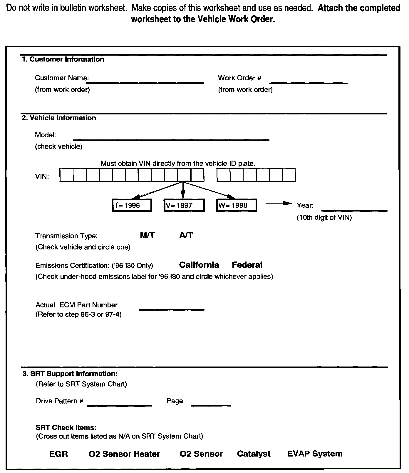 Completing the SRT Vehicle Identification Work Sheet1. Customer Information.