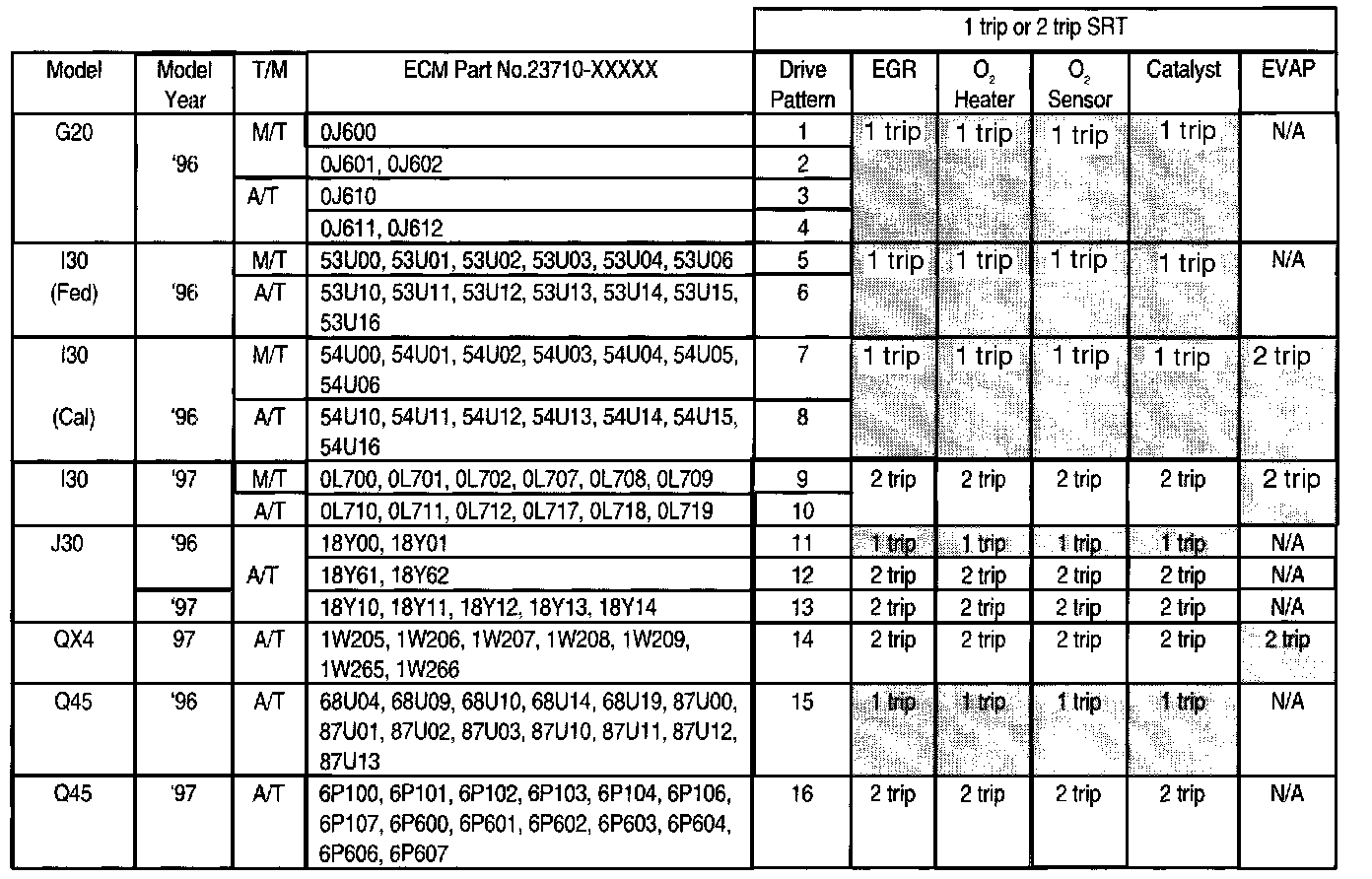 - SRT Items highlighted in gray indicate the drive pattern section for that item must be repeated if the section is interrupted by releasing the throttle when not directed to do so.