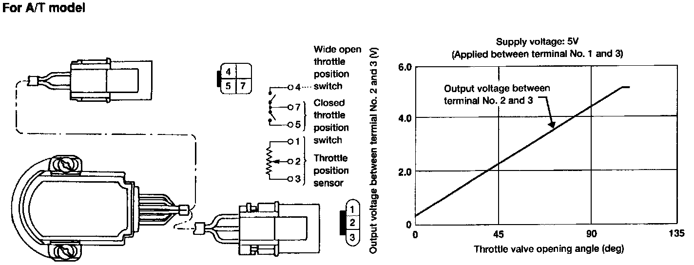 Idle position of the throttle valve is determined by the ECM receiving the signal from the throttle position sensor. This one controls engine operation such as fuel cut. On the other hand, "Wide open & closed throttle position switch", which is built into the throttle position sensor unit on A/T model, is not used for engine control.