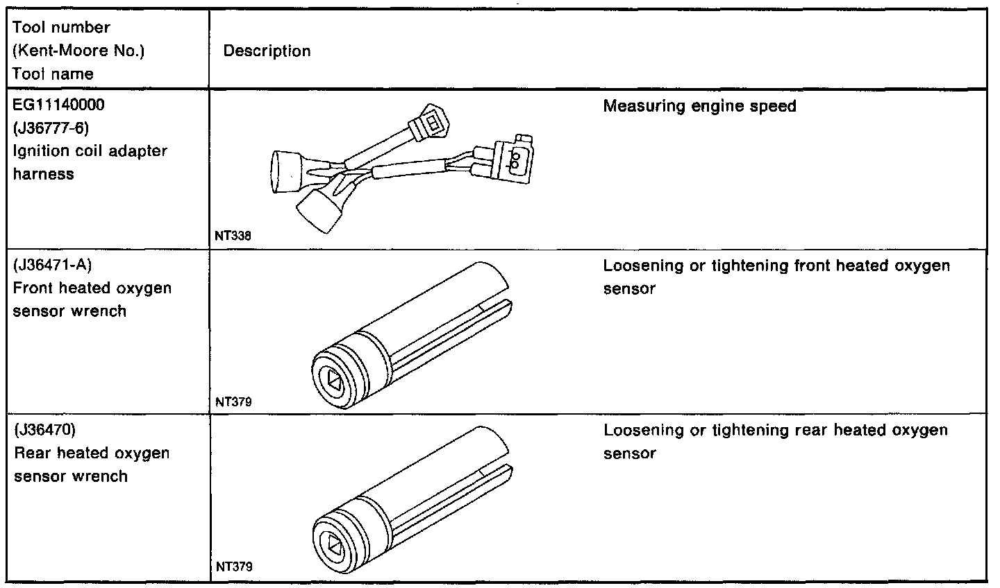 The actual shapes of Kent-Moore tools may differ from those of special service tools illustrated here.