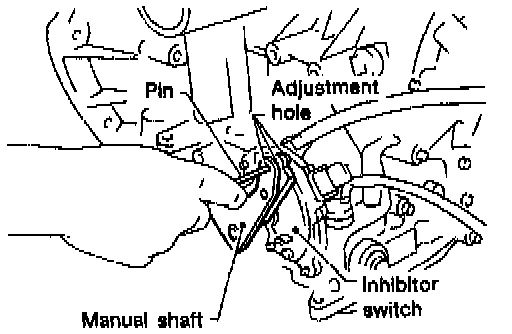 6. Remove pin from adjustment holes after adjusting inhibitor switch.