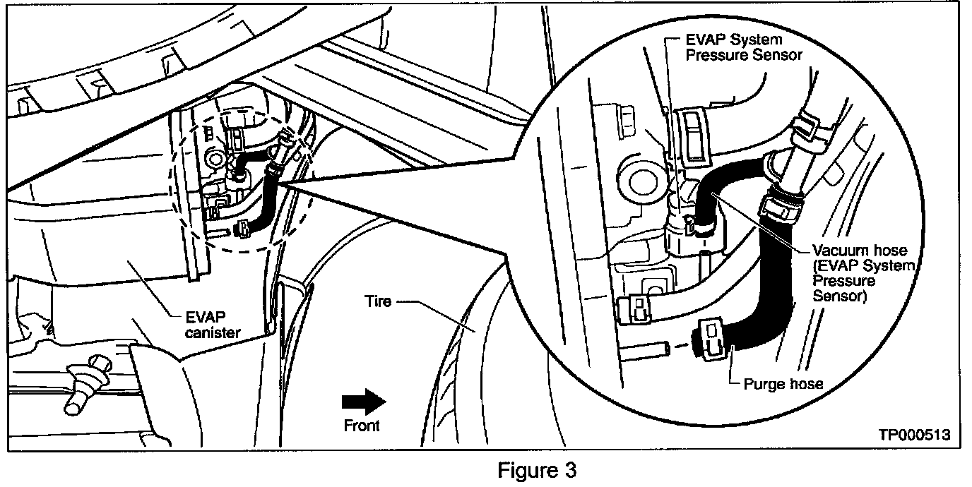 1. Disconnect the vacuum hose from the EVAP System Pressure Sensor (see Figure 3).