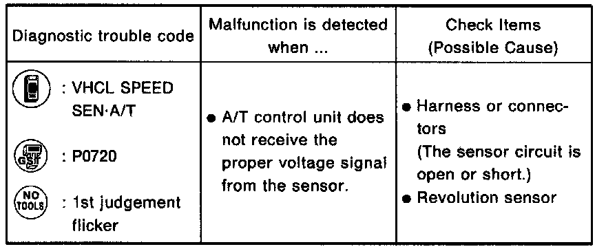 Selector lever in D, vehicle speed higher than 30 km/h (19 MPH), throttle opening greater than 1/8 of the full throttle position and driving for more than 5 seconds.