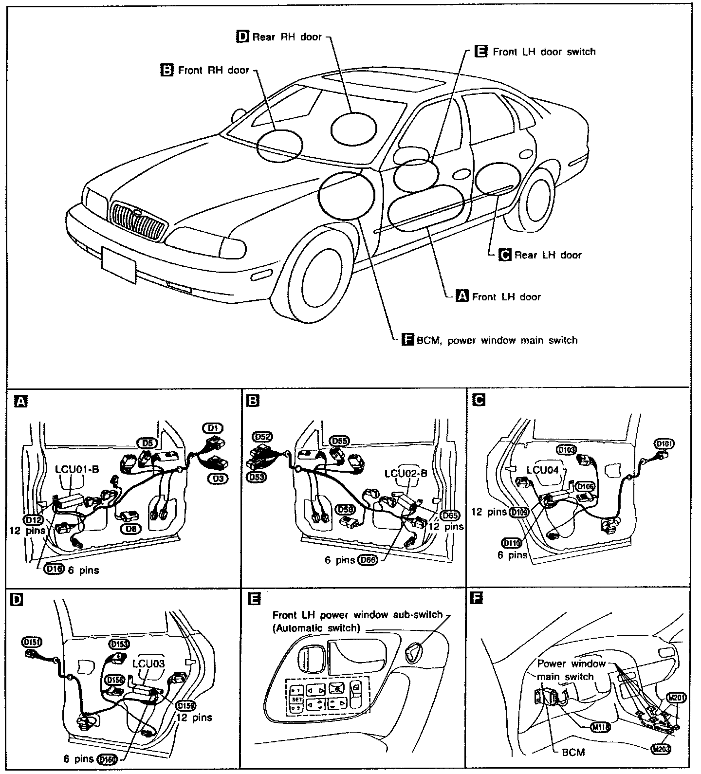 Power Window-LAN Component Parts And Harness Connector Location: