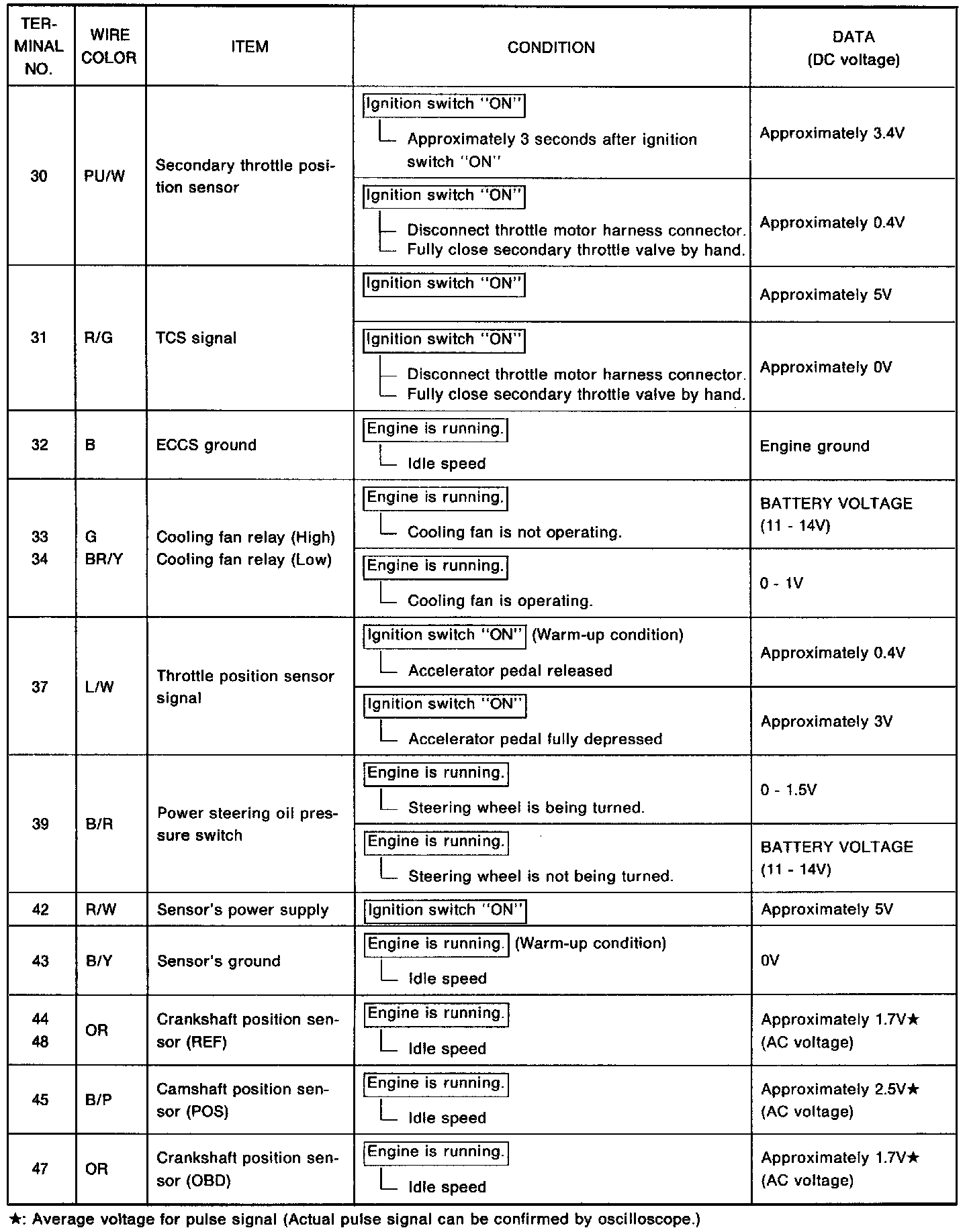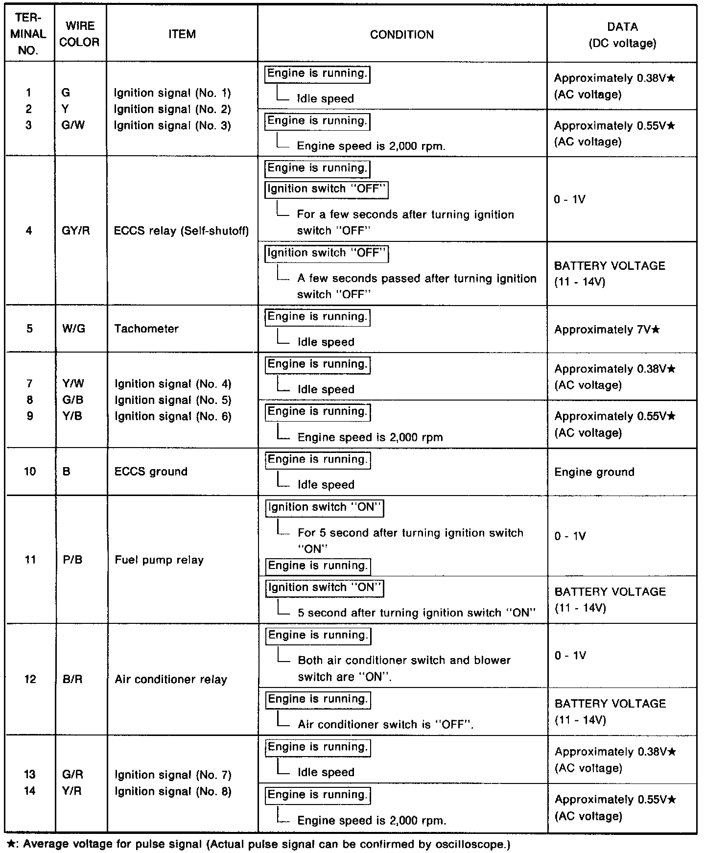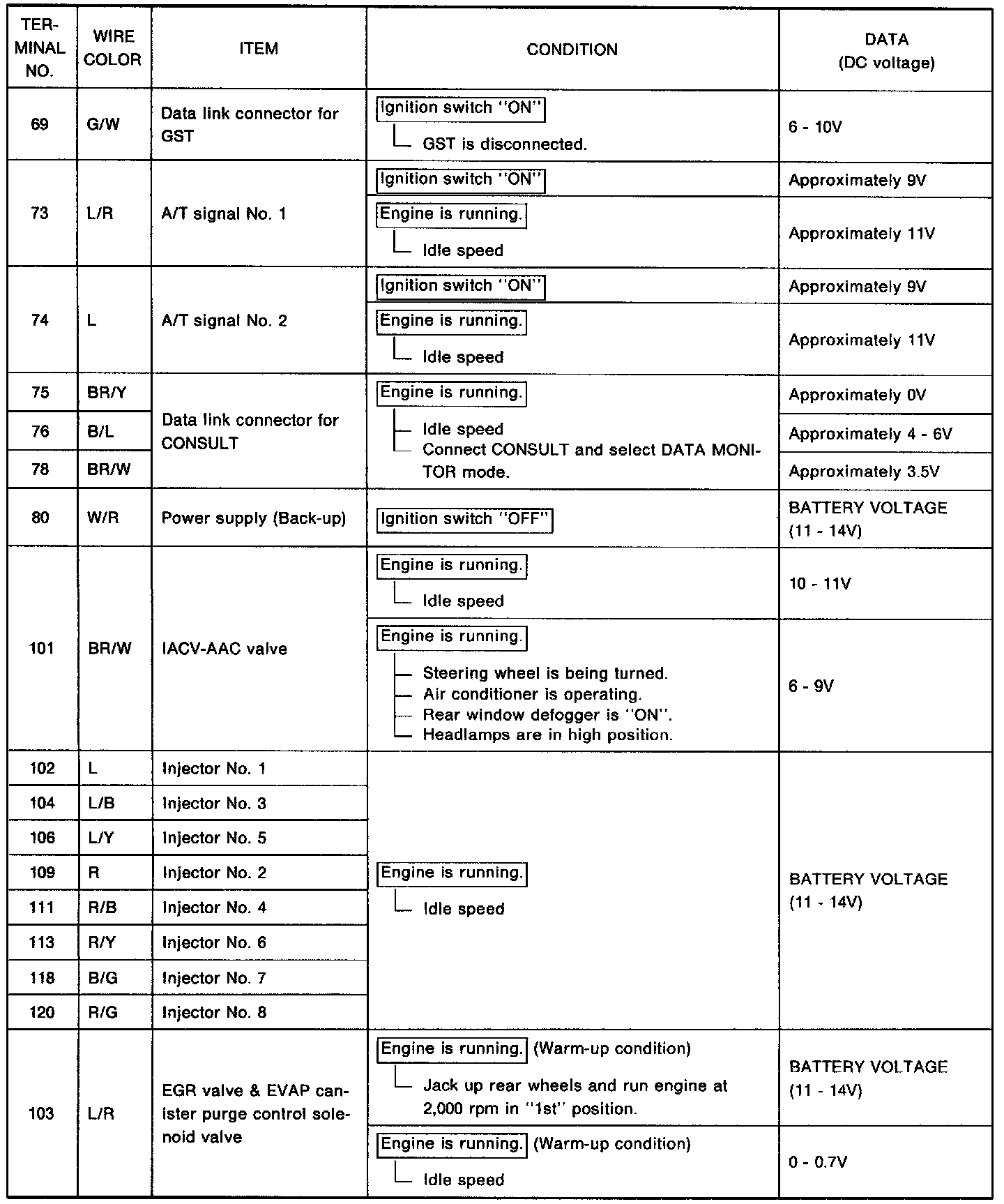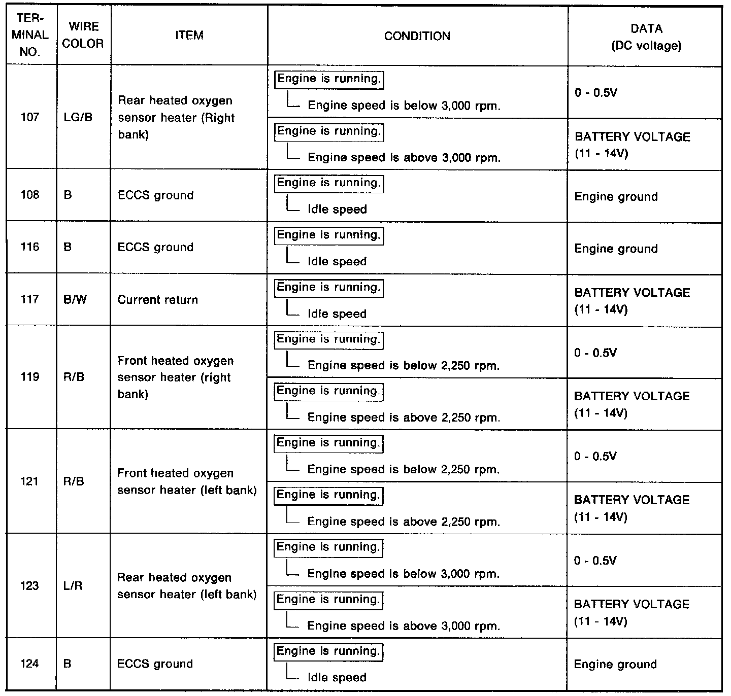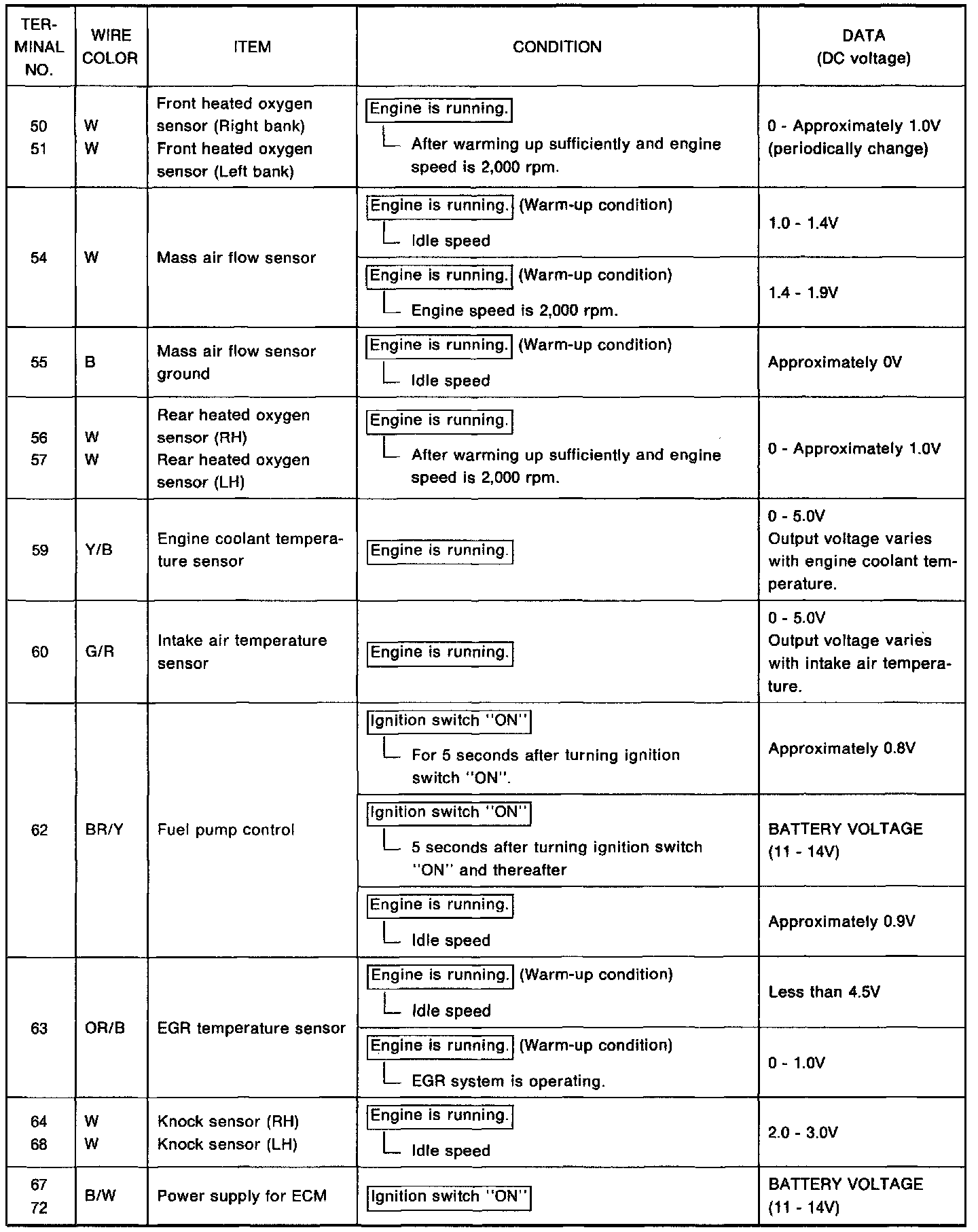 - Specification data are reference values, and are measured between each terminal and (25) (ECCS ground) with a voltmeter.
