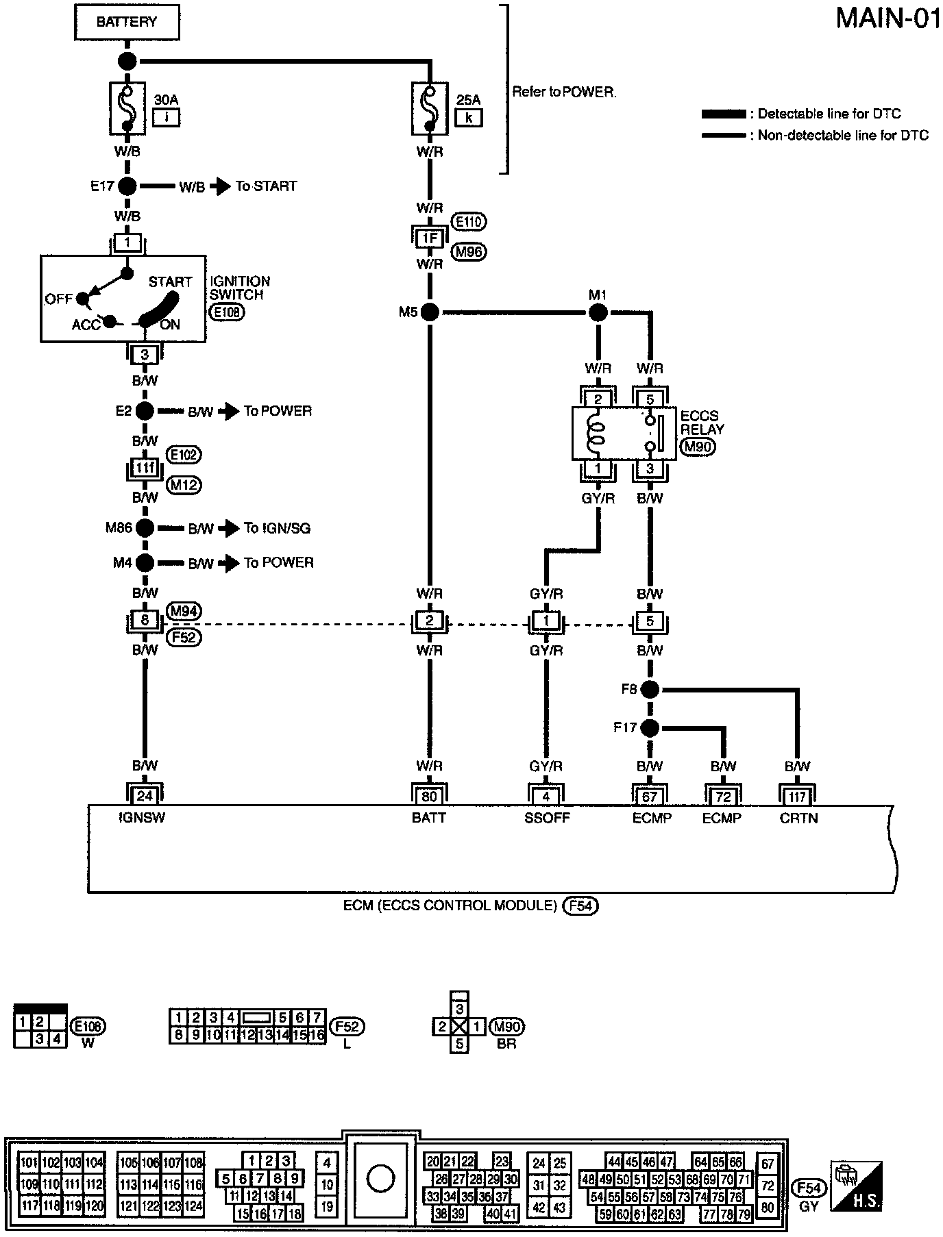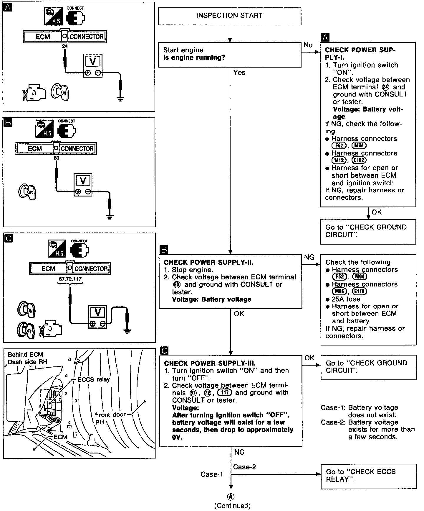 NOTE: The main relay inspection is contained within the ECM main power supply inspection; refer to below.
