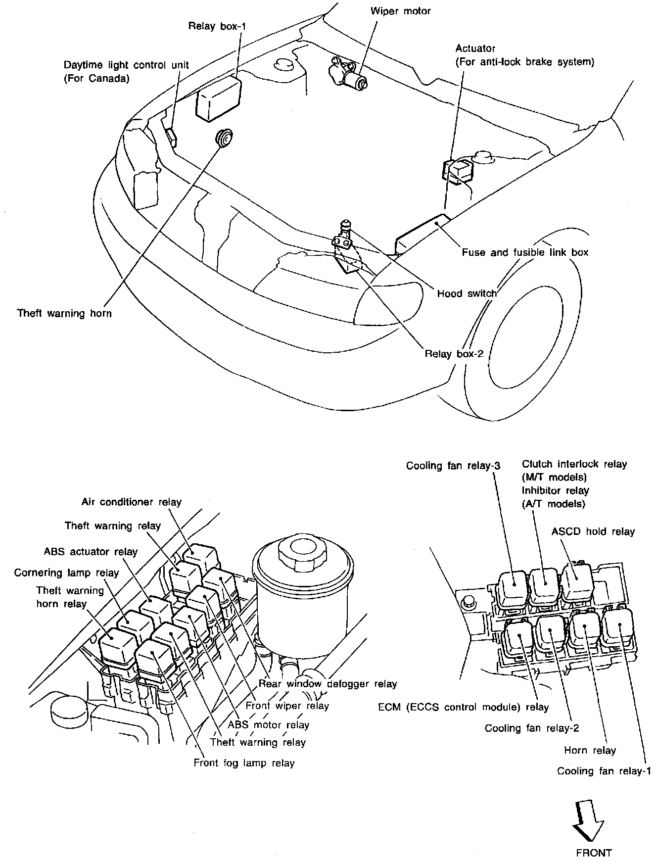 Main Relay (Computer/Fuel System): Locations