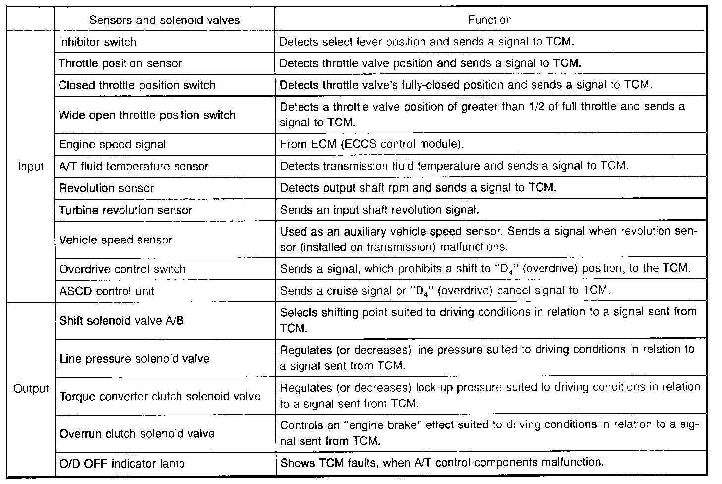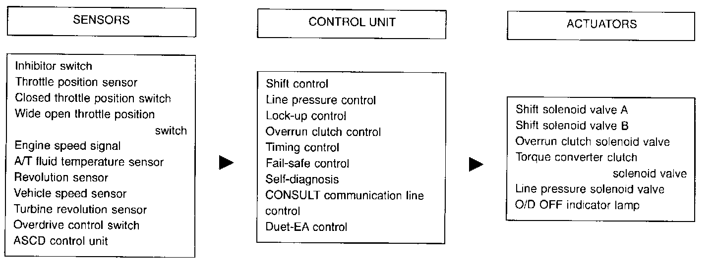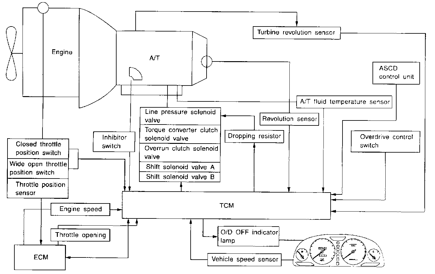 The automatic transmission senses vehicle operating conditions through various sensors. It always controls the optimum shaft position and reduces shifting and lock-up shocks.