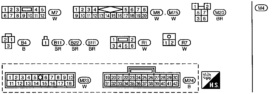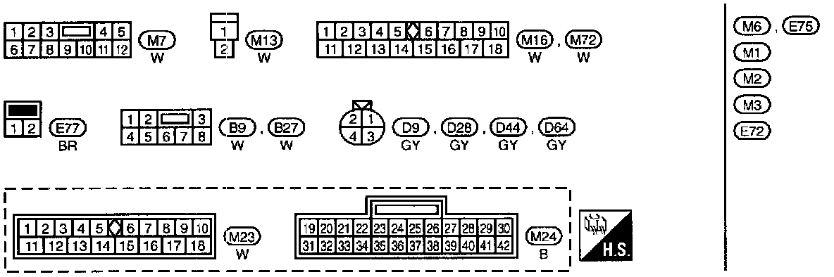 M1, M2, M3, M4, E72 Fuse Block-Junction Box (J/B) Terminal Arrangement