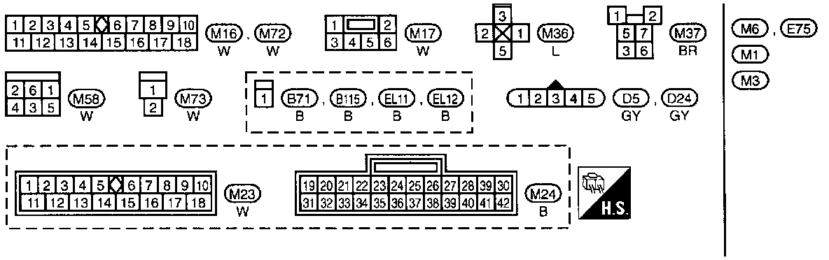 M1, M3 Fuse Block-Junction Box (J/B) Terminal Arrangement