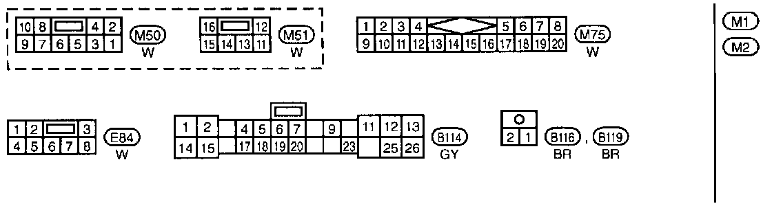 M1, M2 Fuse Block-Junction Box (J/B) Terminal Arrangement